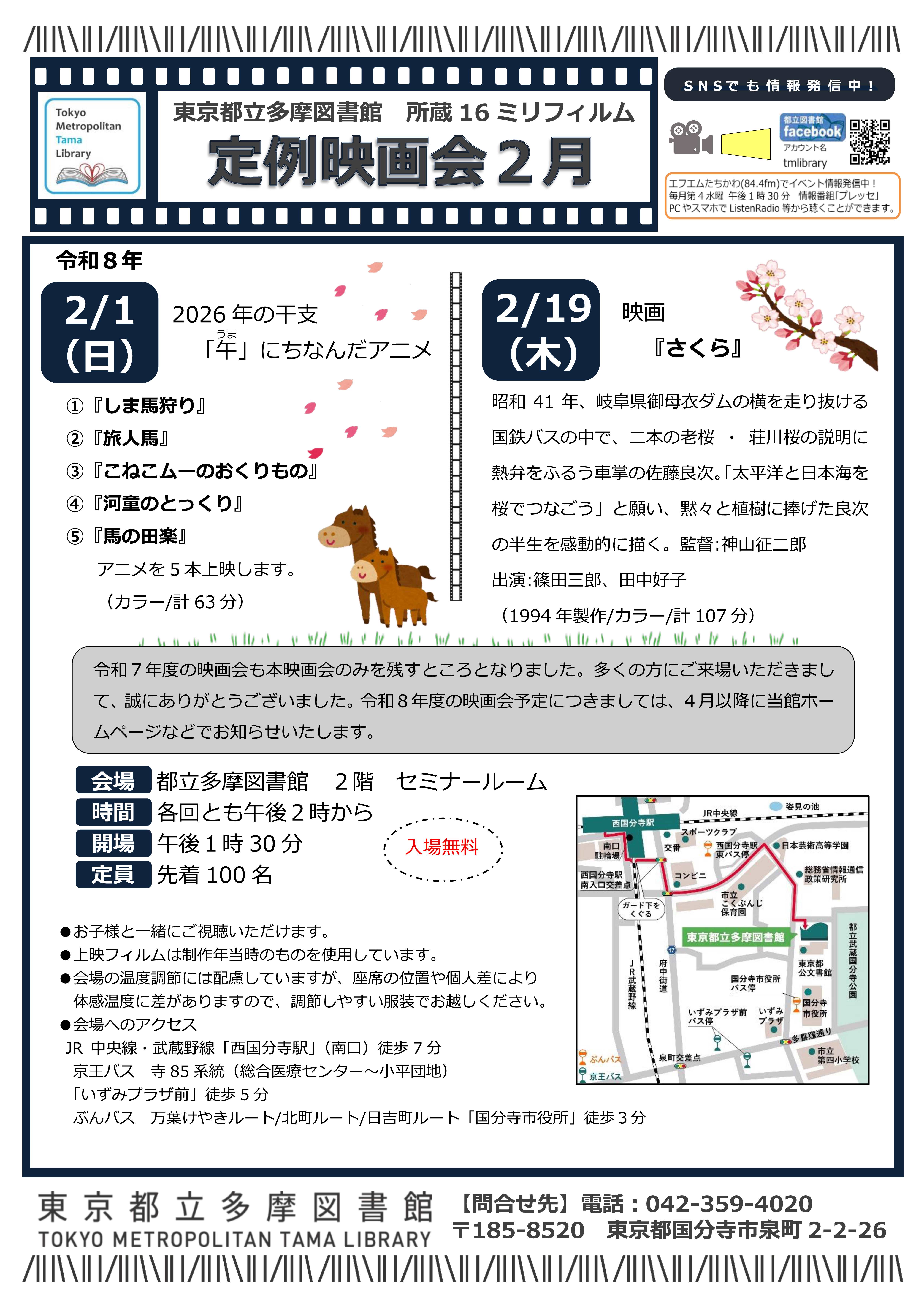 【都立多摩図書館】令和8年2月 映画会 開催のお知らせ