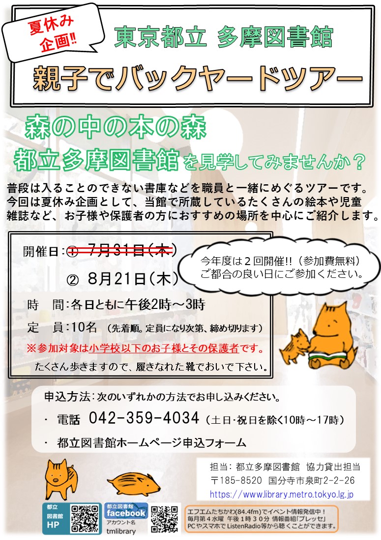 【都立多摩図書館】親子でバックヤードツアー参加者募集のお知らせ