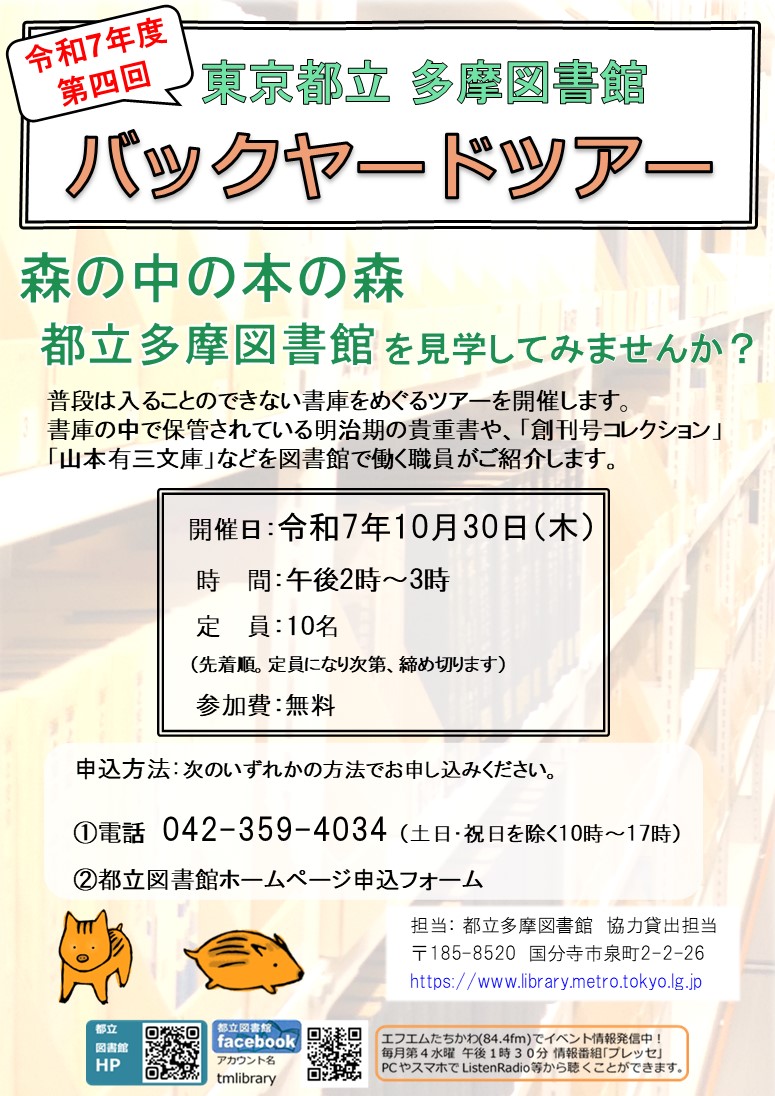 【都立多摩図書館】バックヤードツアー参加者募集のお知らせ
