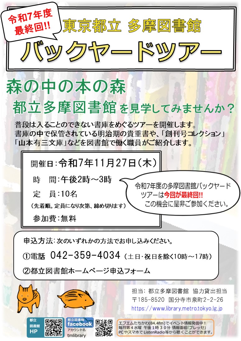 【都立多摩図書館】バックヤードツアー参加者募集のお知らせ(今年度最終回!!)