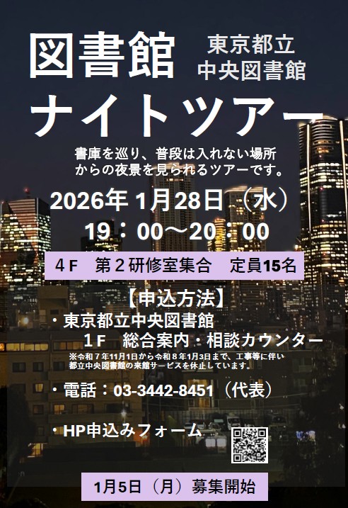 【都立中央図書館】図書館ナイトツアーの参加者を募集します!