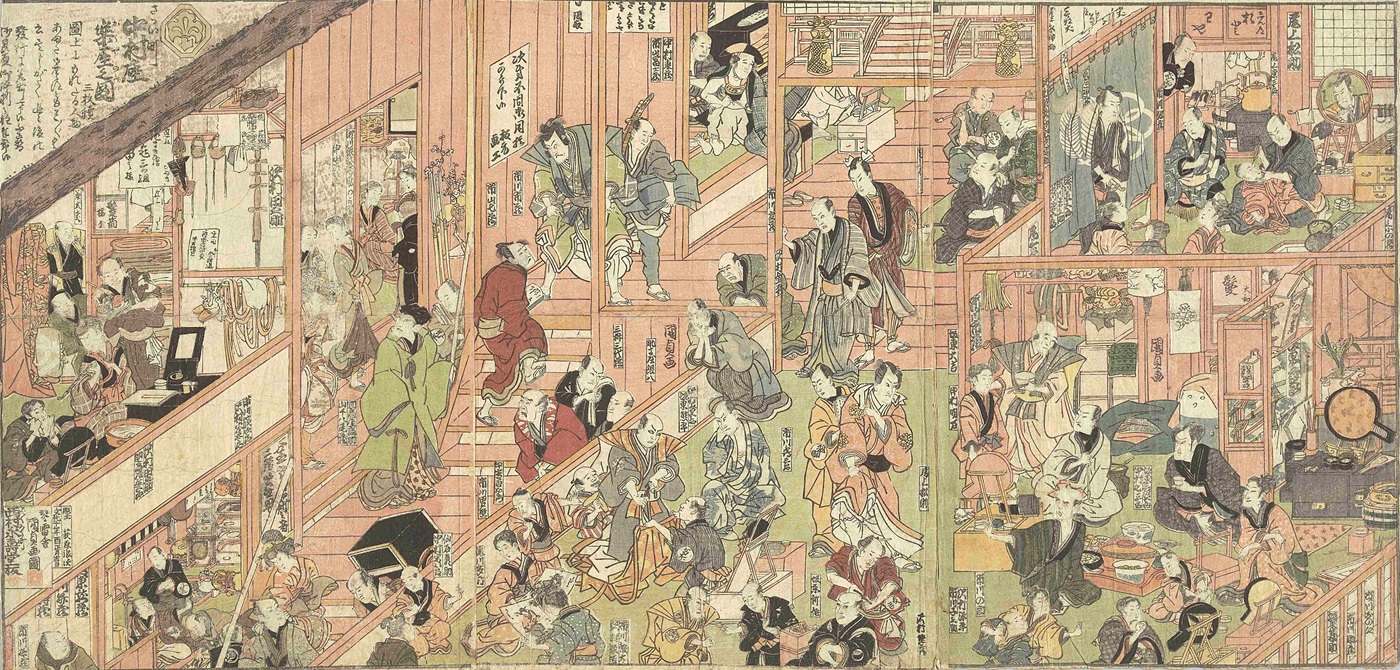 江戸の本屋は、学術的な書物を扱う「書物問屋」と、娯楽的な本や浮世絵などを扱う「地本(じほん)問屋」に分かれていました。地本とは、「江戸で出版された本」のことです。